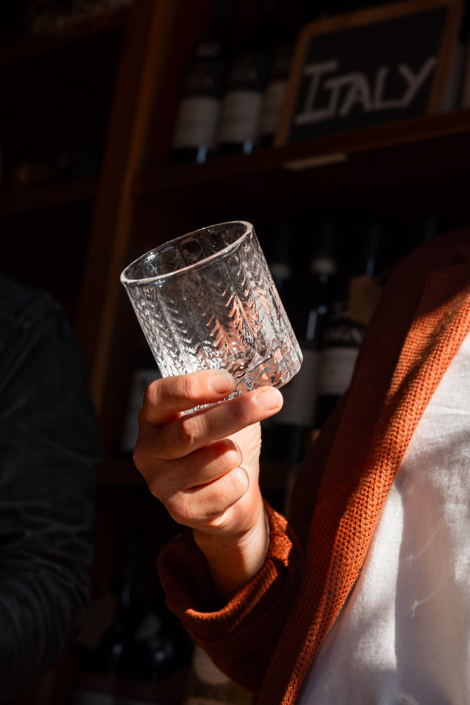 A limited-edition handblown glass designed with the same signture chevron pattern as our bottles. Born from a shared love of craft and care, we've collaborated with Simon Pearce; the iconic Vermont based glassware company to bring you a set made for savoring every sip.